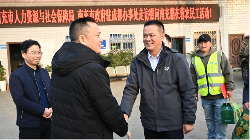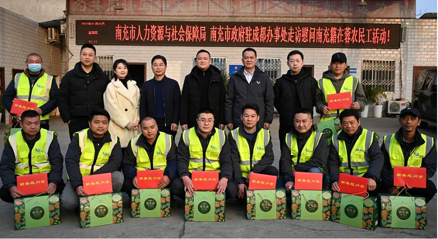昊遠(yuǎn)建設(shè)董事長(zhǎng)杜于斌熱情接待了慰問(wèn)組領(lǐng)導(dǎo)一行,在昊遠(yuǎn)建設(shè)公司,慰問(wèn)組一行詳細(xì)地了解調(diào)研了企業(yè)的生產(chǎn)經(jīng)營(yíng)情況,與農(nóng)民工代表面對(duì)面交流,詢問(wèn)農(nóng)民工的工作、生活情況和身體狀況,鼓勵(lì)大家在成都工作期間繼續(xù)發(fā)揚(yáng)南充人不怕苦、不怕累,攻堅(jiān)克難、勇于創(chuàng)新的精神,希望大家在新的一年過(guò)得更好!